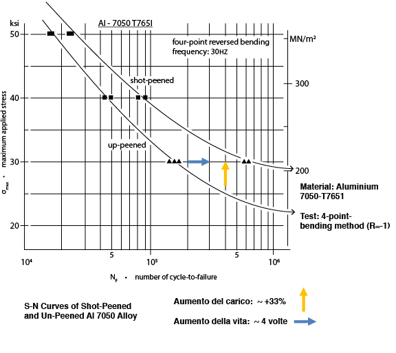 Tensioni residue di compressione introdotte artificialmente dallo shot peening portano un notevole beneficio in termini di prestazioni, aumentando la vita a fatica del particolare trattato.